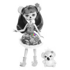 Az Enchantimals meséből ismert Karina Koala és imádnivaló kis koalája Dab, mindenkit elbűvölnek. Karina élénk, vibráló színű ruhát és cipőt visel. Fejdísze kikandikál a hajából, így igazán különleges a megjelenése. A vicces részletek, mint csinos haja, állati vonásokat is tartalmazó arca és jellegzetes kiegészítői egyedivé teszik őt. A gyerekek imádják majd a figura és állatkája közti különleges kötődést, és a világot, ahol a Törődés a Mindenünk.