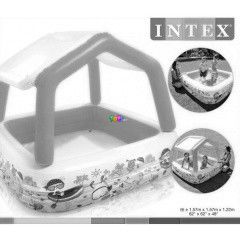 Az árnyékolós gyermek pancsoló megvédi a kisgyermekeket a nap káros sugaraitól, így biztonságos lesz a fürdőzés. A medence teteje tépőzáras, levehető. A szett tartalmazza a javító foltot is. A medence alja nem felfújható! Egy szelep található rajta, ami a víz leeresztését segíti. Űrtartalma: 280 l. Mérete: 157 x 157 x 122 cm. Az "Intex - Gyermek pancsoló árnyékolóval - 157 x 157 x 122 cm" nevű játék gyártója az Intex, főleg 2 és 6 éves kor közötti gyerekek számára ajánljuk.