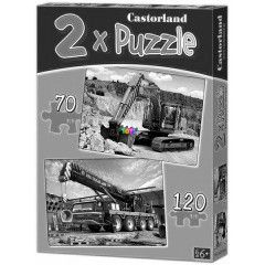 Egy 70 darabos és egy 120 darabos kép rakható ki a készletből. A "Puzzle - Daru és markológép, 70 + 120 db" nevű játék gyártója a Castorland, főleg 6 és 12 éves kor közötti fiúk számára ajánljuk.