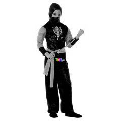 Sárga sárkány mintás ninja jelmez, fekete színben. A csomag a nadrágot, a kapucnis kabátot és az övet tartalmazza. A "Sárkány ninja jelmez, 140 cm-es méret" nevű játék gyártója a Widmann, főleg 8 és 12 éves kor közötti fiúk számára ajánljuk.