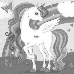 Dobjátok fel az unikornis témájú születésnapi bulit ezzel a gyönyörű papírszalvéta szettel! Mérete: 33 x 33 cm. A csomag tartalma 20 db. Az "Unikornis és szivárvány mintás papír szalvéta, 33 x 33 cm - 20 db" nevű játék gyártója a Godan, főleg 3 és 12 éves kor közötti lányok számára ajánljuk.